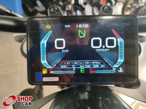 Painel TFT, abertura elétrica de tanque, 2 modos de condução, Indicador de pressão dos pneus, Conectividade entre o Smartphone e painel.Descrição